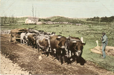 Somewhere along the line, I found these postcards and bought them. No idea where the photographs were taken -- but the colourisation is effective and does add to them, I feel.