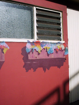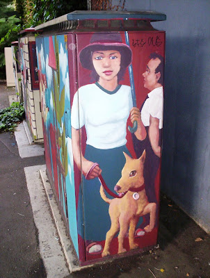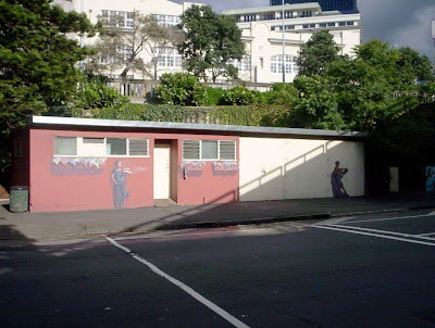 For those who know me and think that I've had my interest in cool street art only since the Timespanner dabbling began -- I present the Surprises near Sturdee Street, downtown Auckland. Quite near the Tepid Baths area, where Fanshawe, Sturdee and Customs Streets are a tangle. I took these around 2006.
