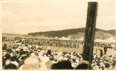 These two may be of the same event. Both were taken by "J. Batchelor, Film Specialist, Whangarei". If that's John Batchelor, then the Auckland City Library photographers database lists him as operating around the years 1925-1932. Which would fit, because the speaker (detail below) sure looks like Gordon Coates.