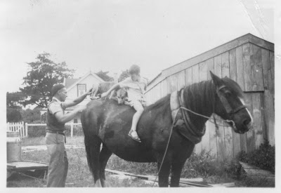These two shots seem to be an attept to get a photo of the boy and the dog on the horse. In the first shot, the dog doesn't seem too keen on the notion.