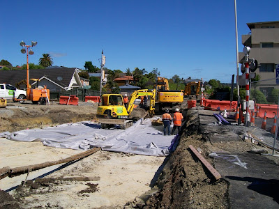 St Jude's Street rail crossing is closed for this Labour Weekend, so that Ontrack can get on with the double-tracking project on this part of the Avondale-New Lynn section.