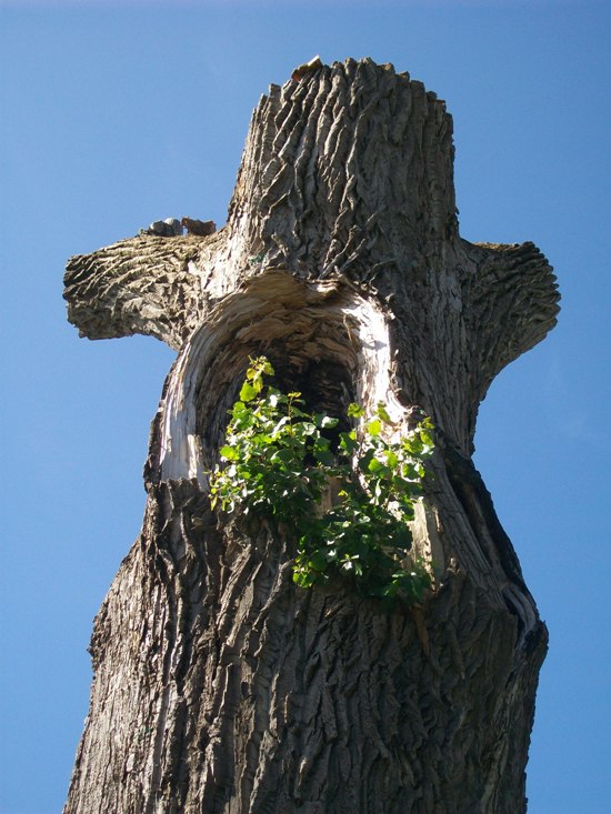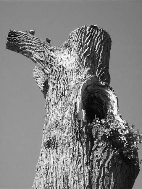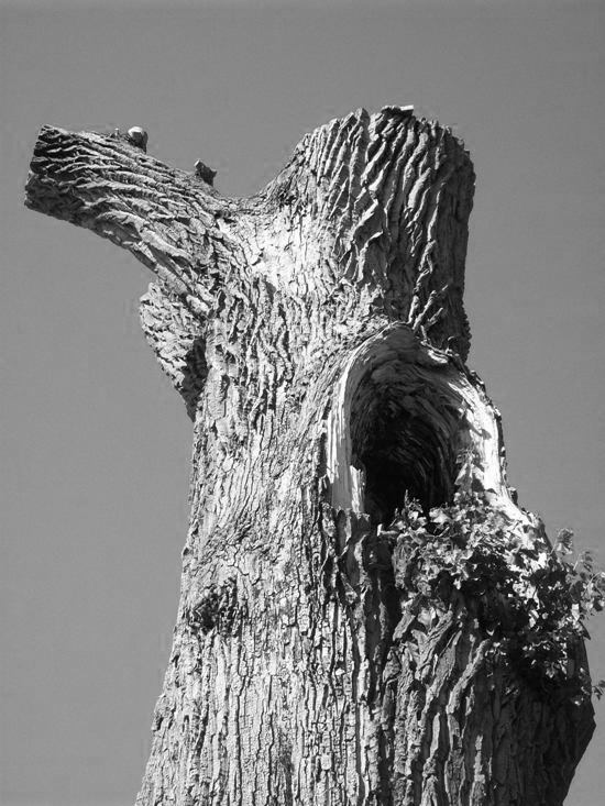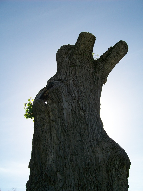 This bit got me, though. The interior of part of the tree is filled with cement -- apparently in a bid to support the internally-rotted tree, and in the aftermath of fireworks damage. How much is tree and how much is cement, I have no idea.
