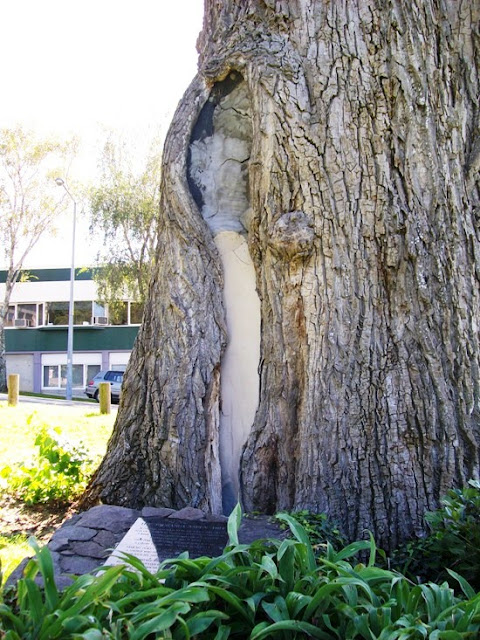 I've been home just over a week now and should have mentioned to you that the elm/pine tree you admired in Tauranga - the one to which settlers hitched their homes - is sprouting new leaves and branches, very high near the crown and a little down one side (I have photos to prove this) - I was stopping at the Strand Motel just in front,which is only one house section away from the small reserve in which your tree stands...so every day on my way to the Textile Confrence I saw your iconic survivor! Even the bark seemed in good condition for one so old.