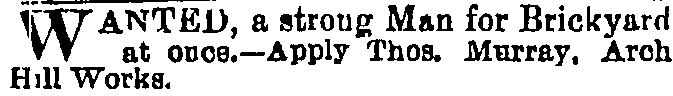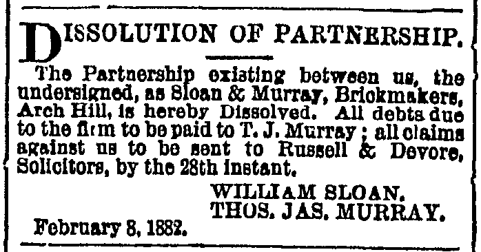 Thomas Murray and William Sloan with their Arch hill brickworks continued.