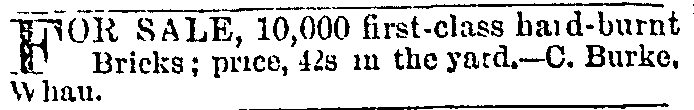 Later that year, a very short-lived business enterprise at Burke's brickyard in Avondale.