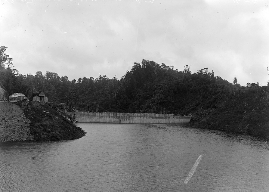February 1919 was when concreting began. During construction, Auckland went through a water shortage in 1920, so an auxiliary dam was built and brought into service at Bush's No. 1 site. Work continued at the main dam though, with Mayor James Gunson officially turning on the water at the new dam 20 December 1920.