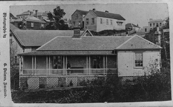 The vicarage for St Paul's, Emily Place. George Pulman card, dated 1870s. Ref 4-12, Sir George Grey Special Collections, Auckland Council Libraries