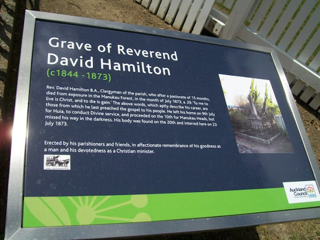 This is the result of a small SLIPs (small local improvement project) application to have an interpretive sign placed beside the earliest grave at St Ninian's Cemetery in Avondale, that of Rev David Hamilton from 1873.