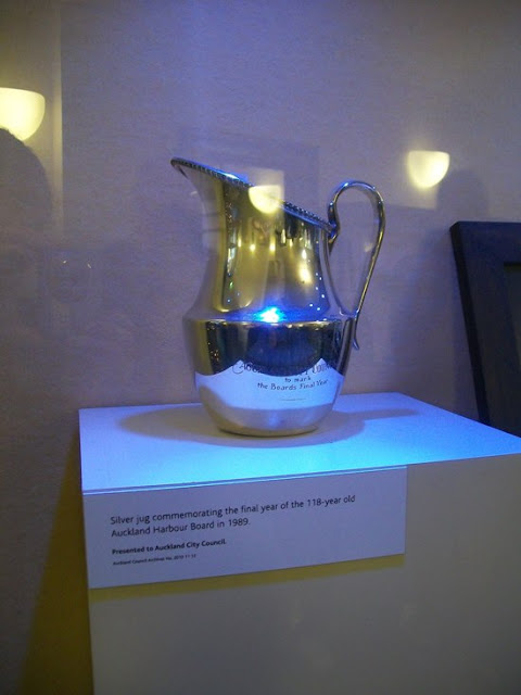 Above, a silver jug to commemorate the last year of the Auckland Harbour Board before amalgamation in 1989 as Ports of Auckland.