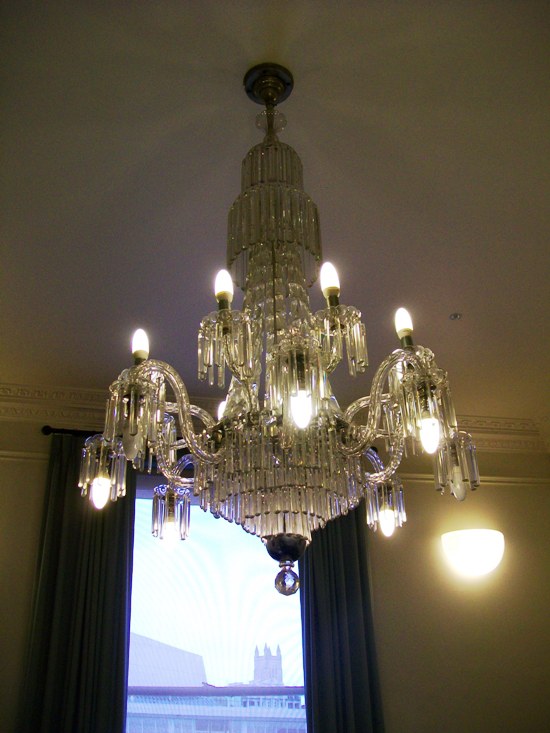 I didn't quite catch the name of the room during the tour, but Rendell McIntosh of Parnell Heritage advised that this, the chandelier remnant of Sir John Logan Campbell's Kilbryde house, now resides in the Ngati Whatua Room, part of the municipal offices section of the Town Hall.