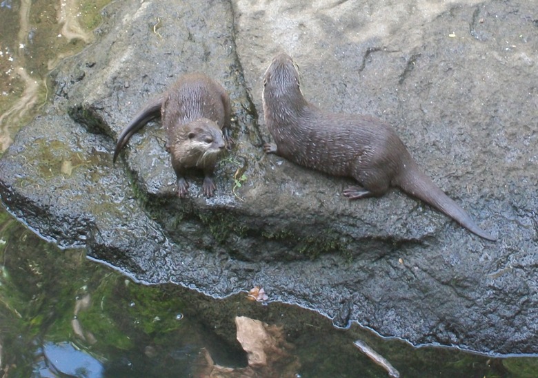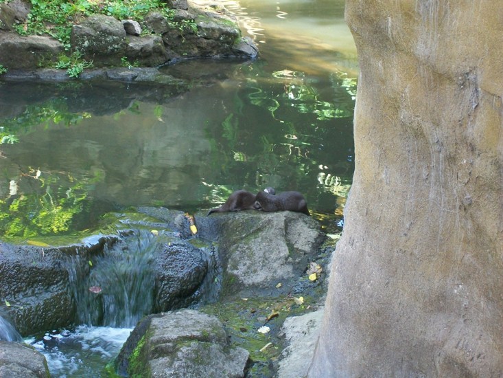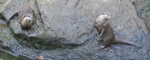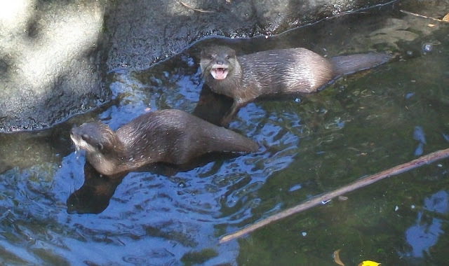 When the nearby Siamang monkeys started up with their hooting, one of the otters started up as well -- and kept a watchful eye on me with the camera.