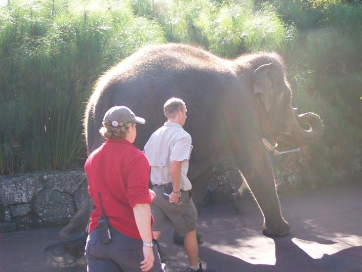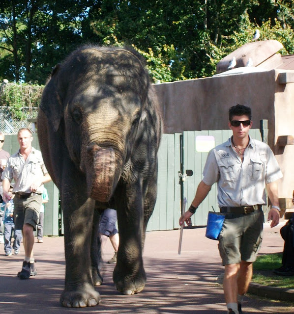 Further on, I was just beside Burma's quarters and area, taking a drink in the heat from a bottle, when I heard murmurs from the crowd -- and realised Burma the elephant and her keepers were heading my way. Quickly put the drink down, pull the camera out, get three shots ...
