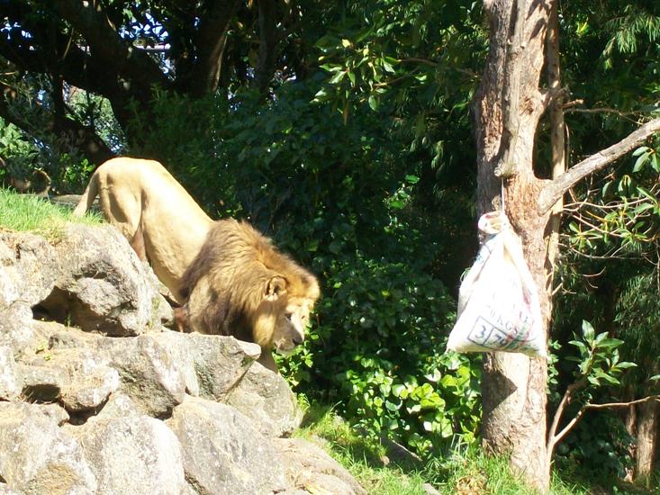 I shifted around to one of the view rooms. The windows were a bit mucky, but I managed a few shots of this lion thoroughly enjoying chewing on his bone.