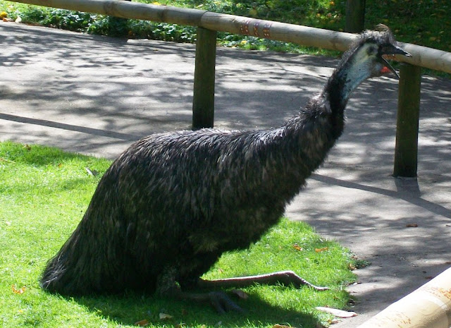 Into the Australia section. Only animals seen were: two emus, a wallaby, and a peacock. Lots of pigeons, but, as I said to a zoo staffer there, "That's Kiwi birds getting in with the Aussies."