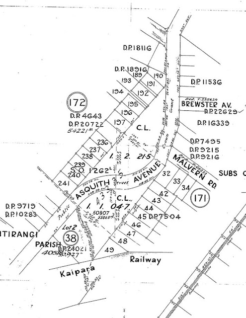 The railway line to Helensville had been constructed through the district in 1879-1880, and the crossing, as it is today, was just to the south of the Meola Stream on Asquith Avenue, and the land boundary between the Parish of Titirangi and the Suburbs of Auckland.