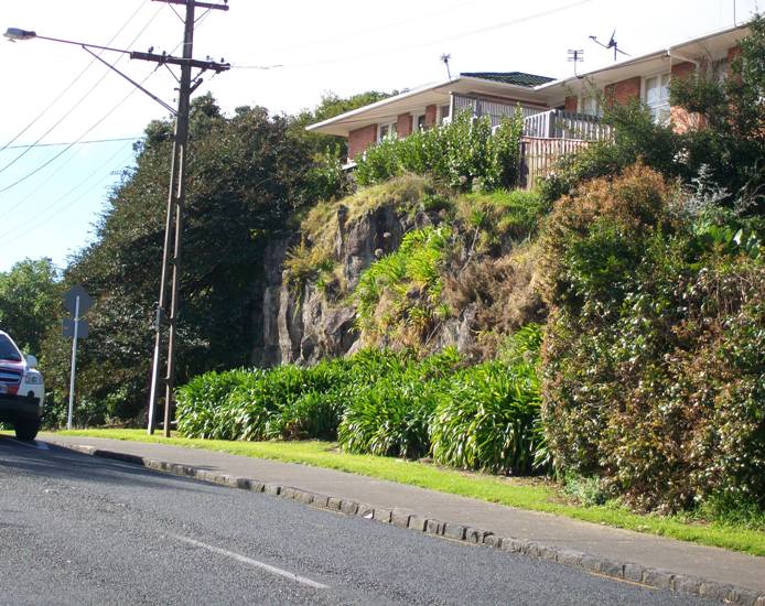 For starters, the line of Asquith Avenue appears on maps from the 1840s right through to the early 1880s – but with a kink, a line going around the troublesome scoria outcrop, and across it where the land sloped more gently toward the south-east. Today, the nearest road to this original line of the “Old Whau Road” is Amandale Avenue. If the “Tramper’s” Irish soldiers had really forged through the “Khyber Pass” as he termed the cutting which straightened the road – they took their time doing it.