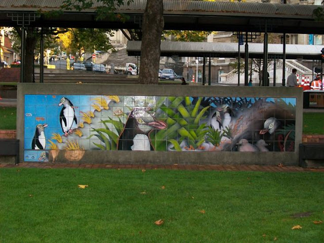 At the Octagon, this tiled wall. I have a feeling that this is similar to tiled art we used to have in Queen Street here in Auckland, before the tiles were reported to have been removed and sent to Onehunga for resiting.