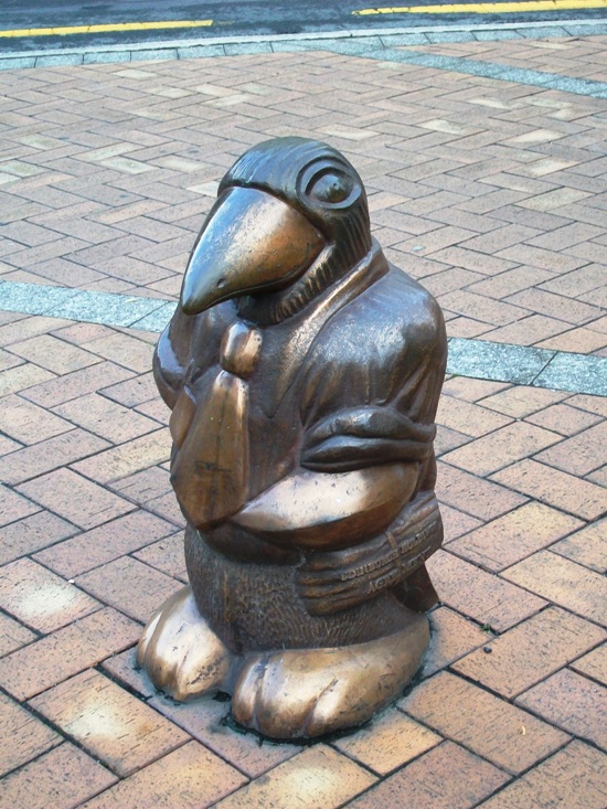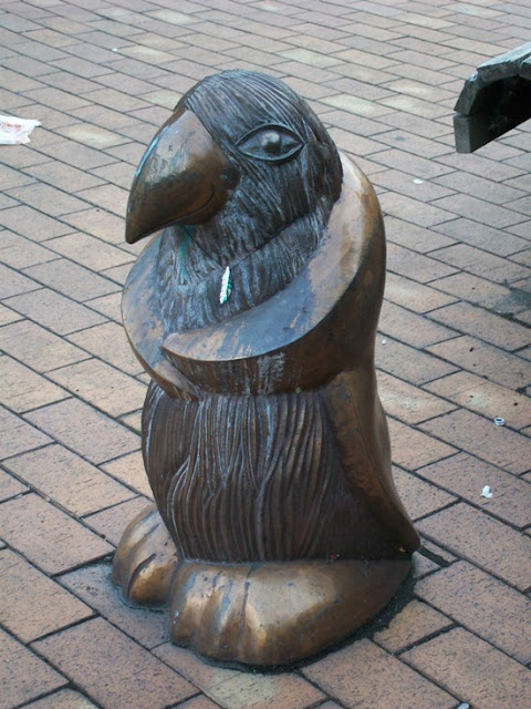 Today, what remains of Cargill's monument is guarded by three penguins (I caught sight of only two, unfortunately, while I was there). "We Are Not Alone", installed August 1999, are by artist Parry Jones, each modelled to reflect back on the nature of the businesses sponsoring them. Auckland needs stuff like this. Random bird sculptures throughout the CBD would be great ...