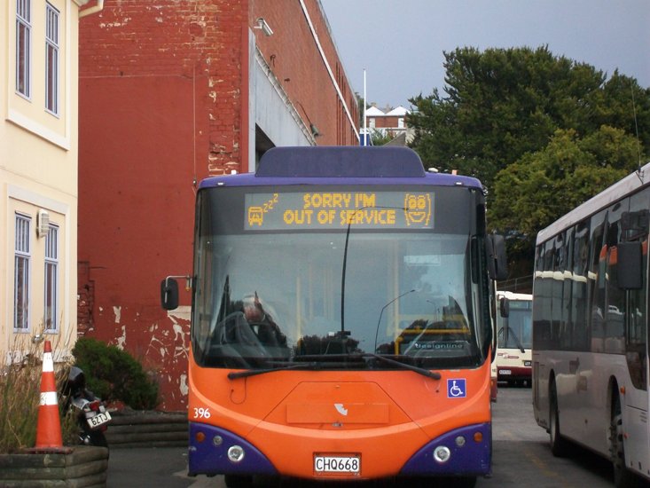 Okay, this isn't art, but I feel it's an example of the quirkiness of Dunedin -- the bus destination signs on their fleet. Passing by the depot on Princes Street, I photographed this particular bus with its version of the "Sorry not in service" sign ...