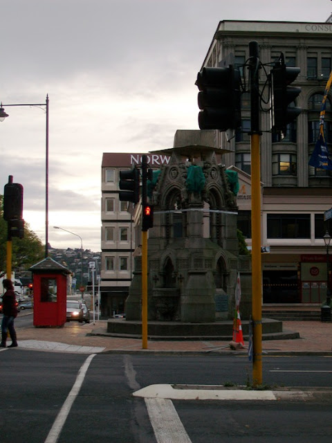 On the break-of-day walk my first full day there, I spotted this wrapped around a lamp post. Very Dunedin-relevant, I thought. I have no idea why it was there, though ... some kind of a marker for a special event?
