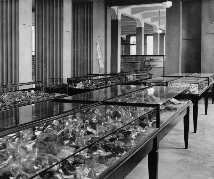 Display cases in the Dominion Museum, Buckle Street, Wellington, circa 1936. Photographer unidentified. Reference Number: PAColl-6301-39, National Library.