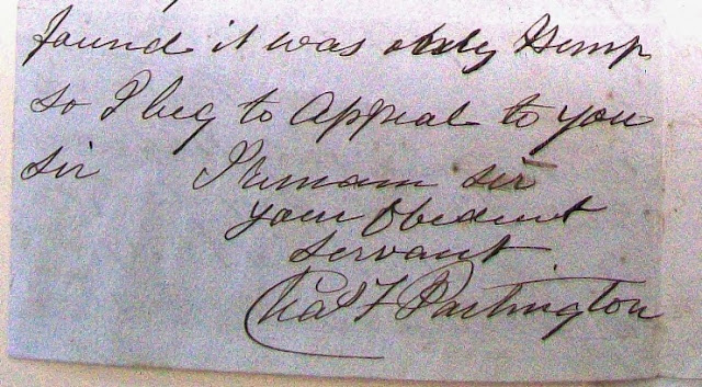 an example of surviving correspondence from Charles Partington, one of