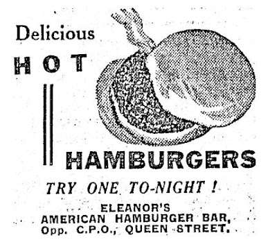 Then we have Eleanor’s Hamburger Bar operating from 19A Queen Street from March 1940, [Auckland Star 2 March 1940 p.1(6)] clear through to sometime in 1942, quite long-lasting for the period. Eleanor’s ads (an example at the top of this post), in case of doubters, certainly do show what is recognisably a hamburger.